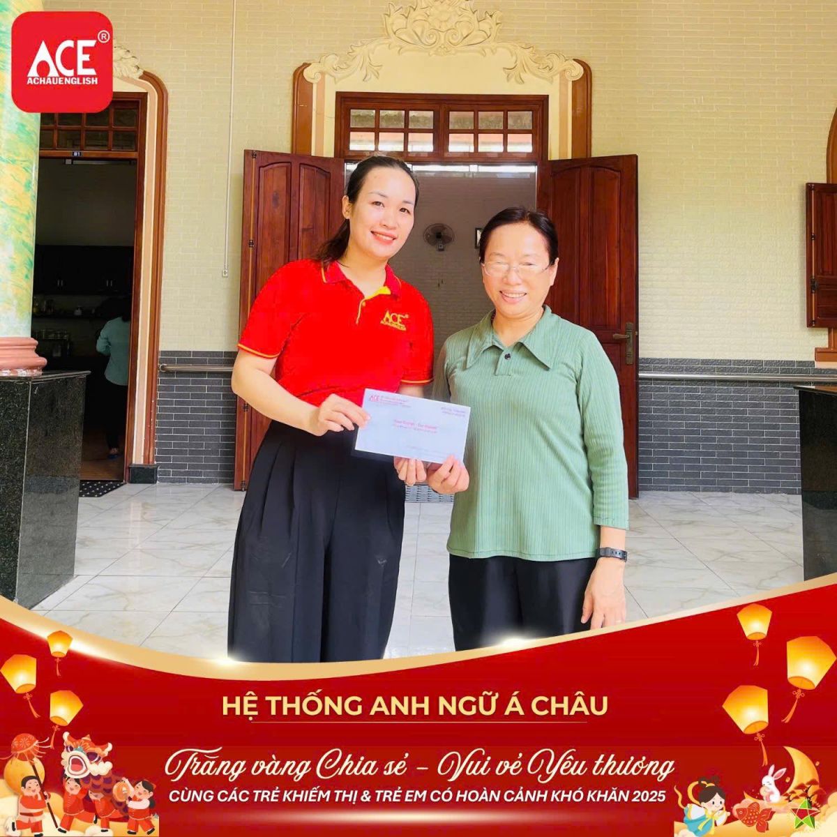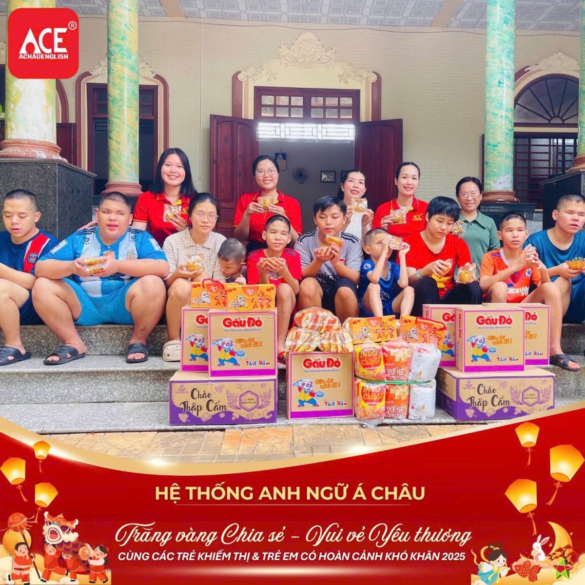 Vào ngày 28/09/2025, chuyến xe thiện nguyện "ACE Chia Sẻ Yêu Thương - Kết Nối Trái Tim" của Hệ thống Anh ngữ Á Châu đã tiếp tục khởi hành, hướng về Mái Ấm Khiếm Thị - Vị Thủy - Hậu Giang. Đoàn đã mang theo nhiều món quà đong đầy tình cảm, cùng những chiếc bánh Trung thu thủ công hình chú heo con, được làm từ nguyên liệu tươi mới, để tặng các em nhỏ khiếm thị. Mục đích là giúp các em cảm nhận trọn vẹn niềm vui và sự ấm áp của tình thân ái trong Tết Trung thu - Tết đoàn viên.