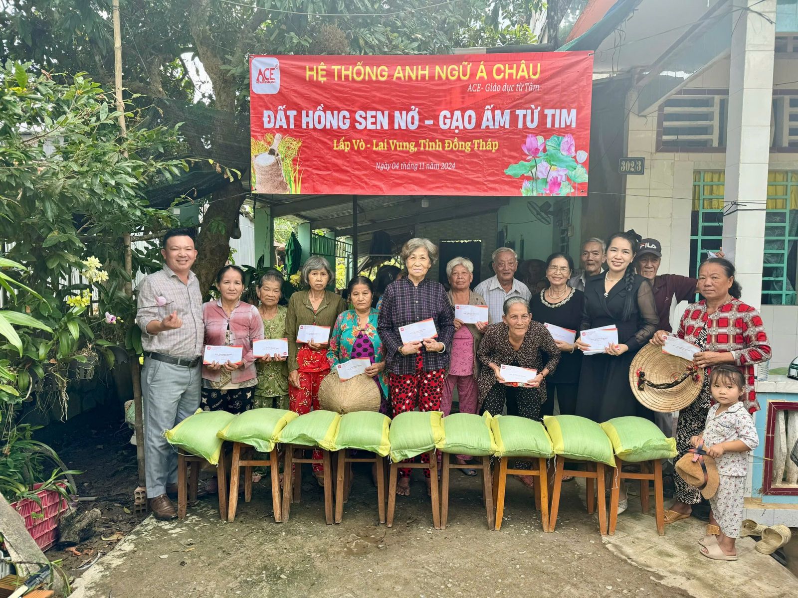 Ngày 03/11/2024, Hệ thống Anh ngữ Á Châu đã tổ chức chương trình thiện nguyện “Đất Hồng Sen Nở - Gạo Ấm Từ Tim” tại huyện Lấp Vò, tỉnh Đồng Tháp, mang đến những phần quà đầy ý nghĩa nhằm san sẻ khó khăn với bà con nông dân có hoàn cảnh đặc biệt tại vùng sông nước miền Tây. Chương trình đã để lại dấu ấn sâu sắc và tạo động lực cho bà con trên hành trình vượt qua thử thách, ổn định cuộc sống.