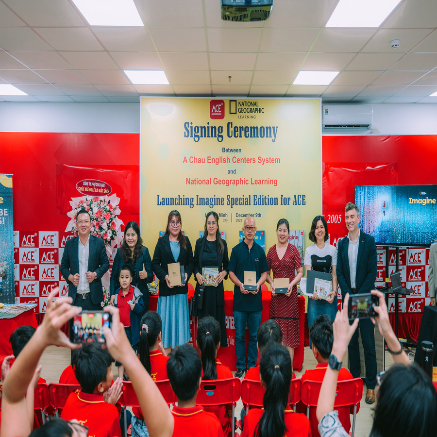 Tối ngày 09.12.2023, với sự tham gia và chứng kiến của các cơ quan truyền thông, báo đài, những vị đại diện đến từ các tổ chức, doanh nghiệp trong và ngoài nước, cùng quản lý, giáo viên, quý phụ huynh, học viên ACE. Ông Nguyễn Đình Hải - chủ tịch Hệ Thống Anh Ngữ Á Châu và ông Michael Carhill - Giám đốc cấp cao khối ELT khu vực châu Á, National Geographic Learning đã chính thức đặt bút ký thành công bản hợp đồng hợp tác, cho ra mắt giáo trình IMAGINE phiên bản đặc biệt dành riêng cho học viên theo học tại ACE.