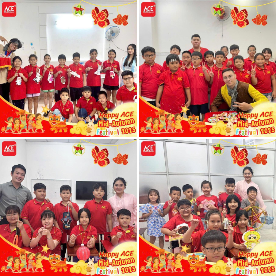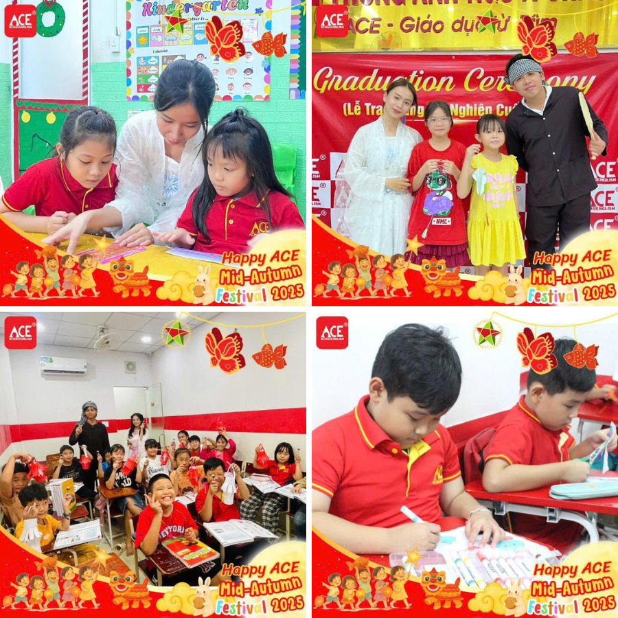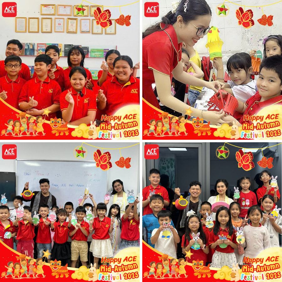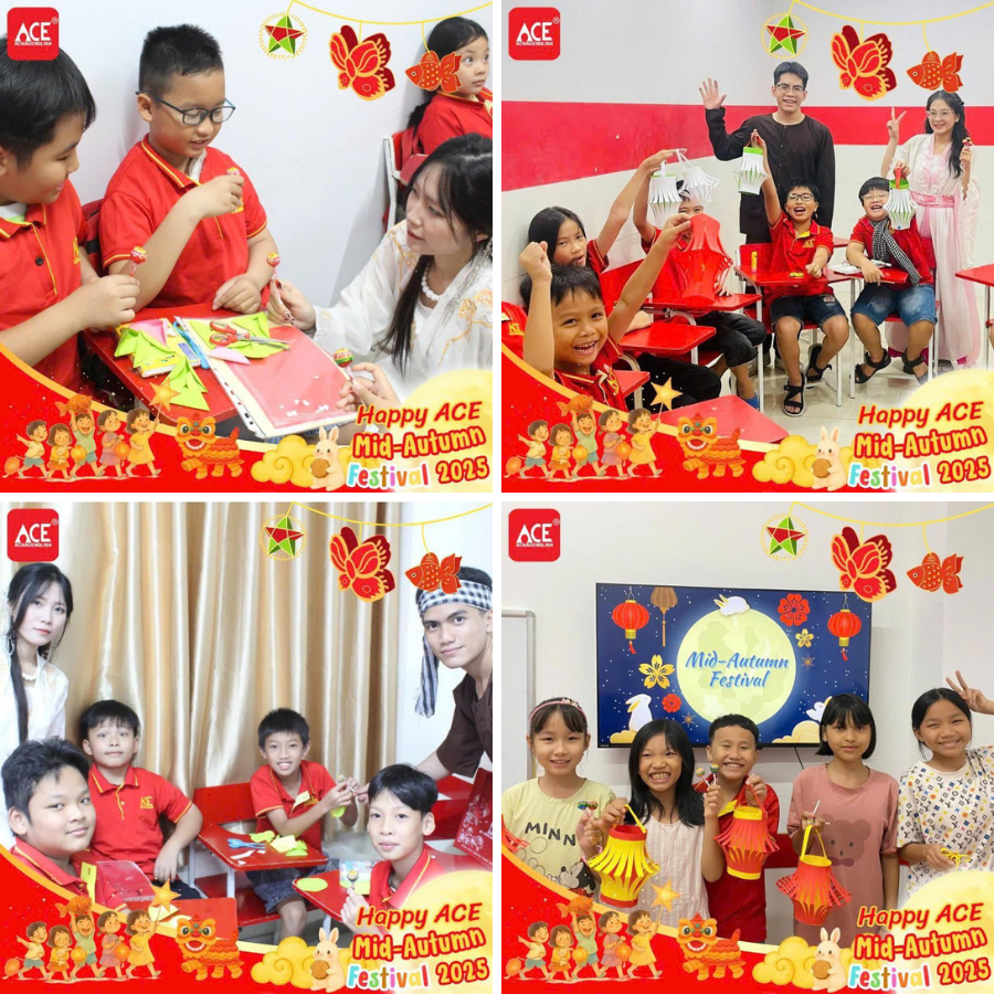 Bên cạnh đó, các em còn tham gia hoạt động tự tay làm lồng đèn Trung thu. Đây là một trong những truyền thống thường niên của ACE nhằm lưu giữ nét đẹp văn hóa, giúp các em có một Tết Thiếu nhi thật trọn vẹn. Đôi bàn tay bé xinh đã khéo léo tạo nên những chiếc lồng đèn lung linh, thắp sáng cả đêm trăng và phản chiếu ánh sáng tuổi thơ trong đôi mắt trong veo của các em, thể hiện rõ tình cảm yêu thương mà đội ngũ thầy cô ACE dành cho mỗi học viên.