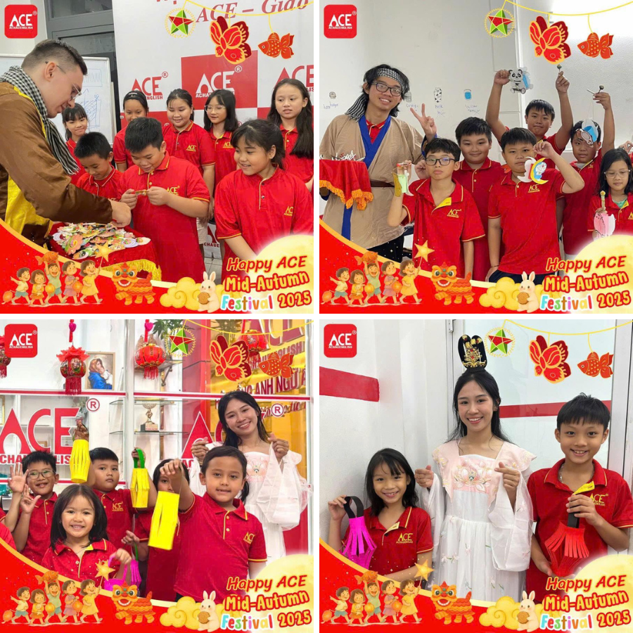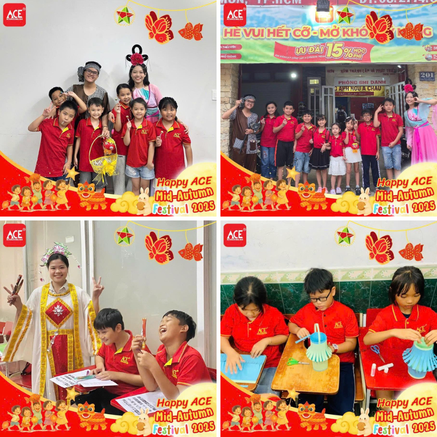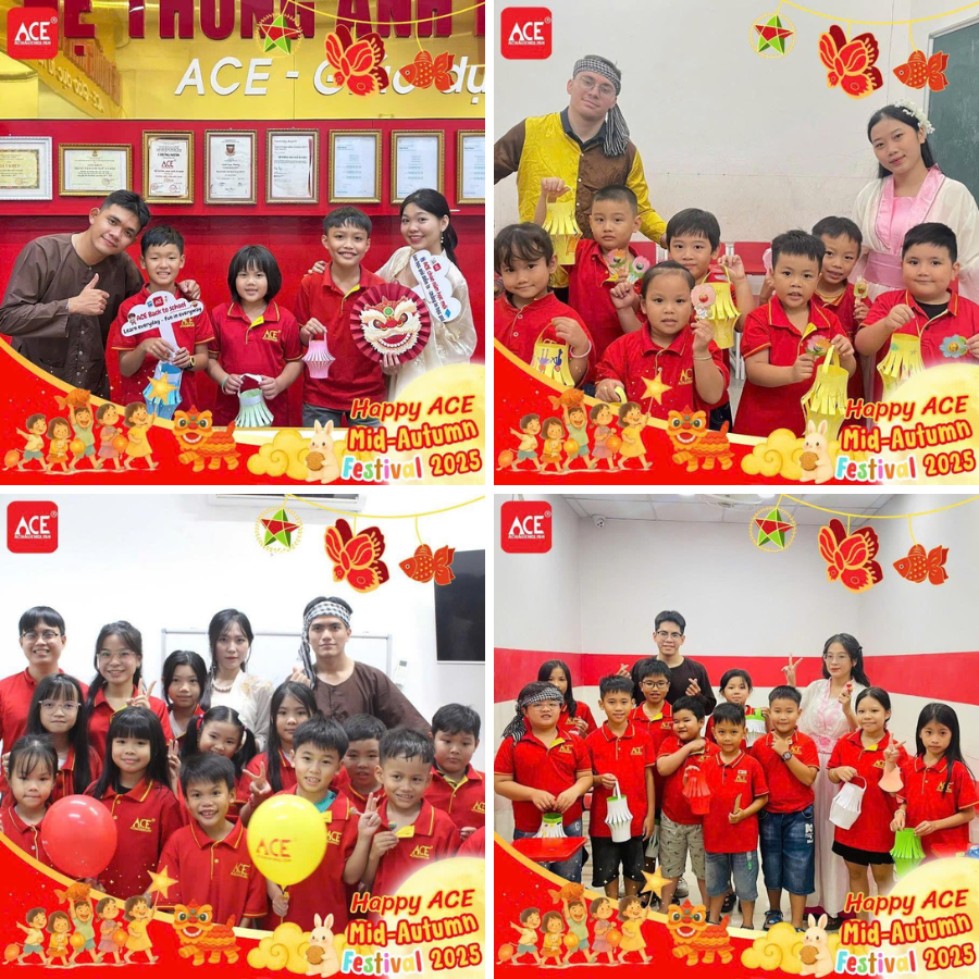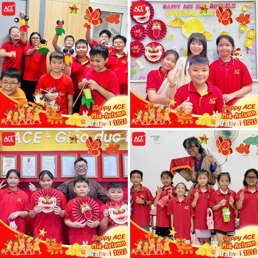 Bên cạnh đó, các em còn tham gia hoạt động tự tay làm lồng đèn Trung thu. Đây là một trong những truyền thống thường niên của ACE nhằm lưu giữ nét đẹp văn hóa, giúp các em có một Tết Thiếu nhi thật trọn vẹn. Đôi bàn tay bé xinh đã khéo léo tạo nên những chiếc lồng đèn lung linh, thắp sáng cả đêm trăng và phản chiếu ánh sáng tuổi thơ trong đôi mắt trong veo của các em, thể hiện rõ tình cảm yêu thương mà đội ngũ thầy cô ACE dành cho mỗi học viên.